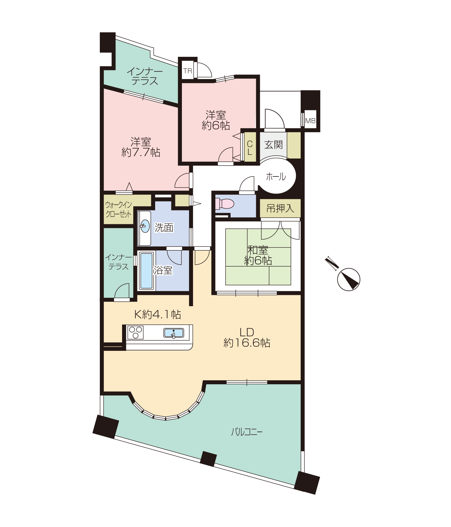バルコニーは最大出幅約4mあり